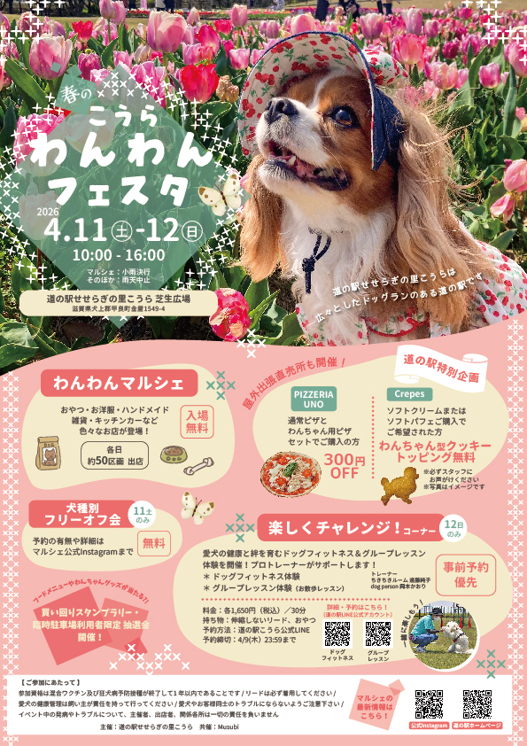 【道の駅こうらドッグラン】4/11(土)ー12(日)こうらわんわんフェスタ開催!